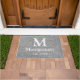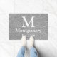 Modern Grey Herringbone & White Family Monogram Doormat