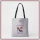 Improve the world: let women lead! Cute tote bag in purple and black colours on a neutral grey background - complete with a high heel shoe and berry coloured kiss.