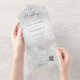 AVAILABLE WITH OR WITHOUT A QR CODE OR DINNER SELECTION OPTIONS. This design features a simple silver grey marble background under a soft white transparent overlay. The back flap displays the bride and groom's initials. Simple and elegant. Created by Simply Farmhouse Press.