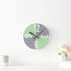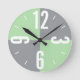 Modern grey, mint green colour blocks large number round clock