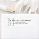 The address label features a clean, modern design with a light background and a large, Grey "M" on the left as a decorative element. The text is centred and uses a sleek, all-uppercase sans-serif font. The layout is simple, elegant, and well-balanced, giving it a professional and sophisticated appearance.