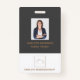 Modern real estate employee name badge with photo and logo. Designed with dark grey and gold tone colours with a place for your photo, logo, name, title and company name. Perfect for a Realtor, Agent, Broker or any professional in the housing market. Use during open houses, client appreciation events and home tours.