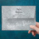 Modern Grey Hearts Script Save the Date and Return Address Wedding envelope. Grey abstract background with a gentle heart pattern. Personalise the envelope with the bride`s and groom`s names and the address and change or erase the Save the date text. Great for your wedding, engagement and save the date mailing.