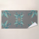Modern Teal Palm Leaves on a grey background, Beach Bathroom Bath Towel Set design by Sandy Closs