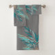 Modern Grey Teal Palm Leaves Beach Bathroom Bath Towel Set