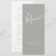 Modern simple grey and white text wedding dinner menu or special event menu. Edit this 4 course menu with your own words. Simple yet modern typographic and little white heart modern menu. Ideal for a simple grey wedding or heart or grey white themed event. © Design www.mylittleedenweddings.com on zazzle.