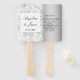 Minimal, simple, elegant silver grey wedding program hand fan with abstract pattern and modern script.
