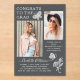 Modern Grey White Butterfly Photo Graduation Party Acrylic Invitations features the simple text "Congrats to the Grad" accented with a flower and butterflies with two of your favourite photos and personalised with name and graduation party details in elegant white script typography. Personalise by editing the text in the text boxes provided and adding your favourite photos. Designed by ©2023 Evco Studio www.zazzle.com/store/evcostudio