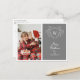 Spread Christmas cheer with this elegant and modern Christmas postcard featuring a white line art mistletoe design framing a classic crest easily customisable with your initials over a modern grey background. Easily customise this holiday postcard by uploading one of your favourite family portraits. The back of the postcard is fully customisable, allowing you to add a personal message to your friends and loved ones.