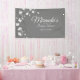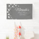 Pretty and modern bridal shower design features a spray of white flowers and white customisable text on medium grey background