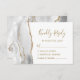 The left-hand edge of this elegant modern wedding RSVP enclosure card features a grey and white watercolor agate border trimmed with faux gold glitter. The title "Kindly Reply" appears in handwriting script, with customisable text below in gold-coloured copperplate font on a white background. The reverse side features a matching grey, white and gold agate design.