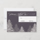 Grey and White Modern Winter Wedding RSVP Cards with evergreen trees. Customise with your and wedding information text.