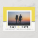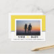 Modern ultimate grey and illuminating yellow colour block wedding Save the Date photo postcard. The upper of this Save the Date design is of yellow colour with a grey stripe while the bottom is of white with the text. It also features a photo of the couple.