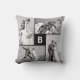 Modern Grid Lines Black Monogram 4 Photo Collage Cushion