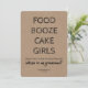 "FOOD BOOZE CAKE GIRLS NOW THAT I HAVE YOUR ATTENTION will you be my Groomsman?" Funny proposal cards.