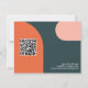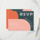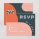 A modern wedding RSVP enclosure card bursting with pop of colour orange, teal blue green and peach and groovy arch designs for a boho retro 70s vibe. It comes with a QR code to RSVP or to direct your guests to your wedding site.