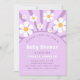 Modern Groovy Retro Pink Purple Daisy Baby Shower Invitation