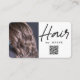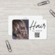 Modern networking QR code business card with 2 photos for makeup artist, hair stylish, lashes or nails extensions small business. This trendy chic cosmetologist scannable barcode business card is a good way to promote and engage with your customer by sharing more info about your business using the QR code, connect to your social media or add your logo for branding purpose.