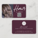 Modern networking QR code business card with 2 photos for makeup artist, hair stylish, lashes or nails extensions small business. This trendy chic cosmetologist scannable barcode business card is a good way to promote and engage with your customer by sharing more info about your business using the QR code, connect to your social media or add your logo for branding purpose.