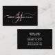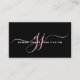 Modern Hair Stylist Pink Script Monogram Black Business Card