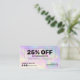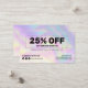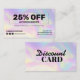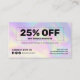 Attract new customers and drive sales with these beautiful holographic discount cards. The unique design is memorable, and the customisable discount lets you promote any special deal. Customise with your business information and start boosting your revenue!