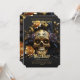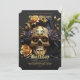 Modern Halloween Birthday Party Black Gold Skull Invitation