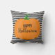 Modern Halloween Black Stripes with Pumpkin Cushion