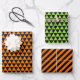 Fun, stylish, trendy, custom, personalised, halloween orange and black colour stripes geometric triangles and chequered chequered chequered checks, modern pattern, elegant faux gold script, premium quality, gift wrap wrapping paper sheet set. Each sheet is customisable. Simply type in Happy Halloween / your greetings / wishes / note, and your name / couple's names / family name / company name / recipient's name, to make each wrapping paper sheet one-of-a-kind, and your gifting truly special. The sheets come loosely rolled, crease-free. Lay flat edges make these sheets ideal for DIY crafts and projects, such as decoupage, matting, and scrapbooking. They can also used for book covers and drawer liners. Perfect for both, home and business, adults and kids. Great wrapping paper for wrapping gifts for your loved ones, kids, employee, staff, clients, friends and family, for halloween, christmas, holidays, scary spooky zombie haunted halloween theme birthday party, costume party, office party, wedding, baby shower, and more.