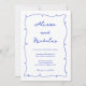 Modern Hand Drawn Blue Cursive Monogram Wedding Invitation