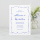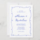 Modern Hand Drawn Bright Blue Monogram Wedding Invitation