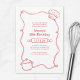 Whip up fun with this hand-drawn red cooking class birthday invitation, featuring a whimsical chef hat, rolling pin, and pot illustration. Perfect for celebrating a milestone or foodie gathering, this chic line-art design brings a playful culinary flair to adult parties or cooking school events. Customize the name, age, and event details for a creative, chef-inspired celebration.