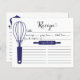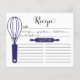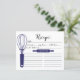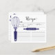 Contemporary Bridal Shower Kitchen Recipe Cards featuring a stylish hand lettered black typography script font with a blue whisk, rolling pin & hand mixer. The front of our recipe card offers room for a recipe title, from the kitchen of and ingredients space. Flip our recipe card view directions. Visit our shop for matching bridal shower invitations Available in our shop in a large assortment of popular wedding shower colours. Perfect bridal shower invitation insert for a stock the kitchen bridal shower.