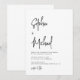This wedding invitation features a contemporary hand lettering script, creating a stylish and whimsical feel. The informal, handwritten style adds a personal touch, while the clear layout ensures the important details are easy to read. Perfect for couples looking for a unique and modern way to invite their guests, this invitation sets a playful tone for your wedding celebration.