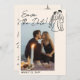 Modern Hand Written Drawn Couple Wedding Fun Photo Save The Date