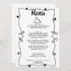 A colourful retro funky modern black and white wedding dinner menu. Which features chic template design of white background and black typography. With Hand drawn frame border and covered cooked dish . A Perfect and matching with the whole suite.