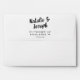 A retro modern hand written bright black and white wedding envelope. Which features bold whimsical bride and groom's names in black and white background colour. And personalised return address . Which suits the whole wedding suite.