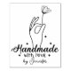 This modern "Handmade" stamp features a hand with a flower and a custom name.