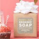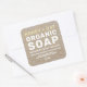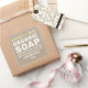 Modern and minimal handmade honey + oat soap sticker with your product name, business name, website and address in bold white and pale yellow simple stylish typography on a kraft paper background with a chic touch of gold honeycomb pattern. Simply add your own small business details to the label. Exclusively designed for you by Happy Dolphin Studio. If you need any help or matching products, please contact us at happydolphinstudio@outlook.com.