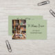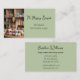 A modern business card in a sage green colour with a photo frame. Perfect for a shop that makes and sells handmade natural products like soaps and candles.