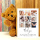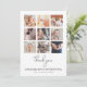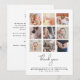 A beautiful modern style square photo grid collage new baby thank you postcard perfect for introducing your little one to your family and friends and thanking them for the support during your pregnancy! The modern design features a collage of 9 square customisable photos. Below there is a ´´thank you´´ header in modern stylish handwriting and your baby´s name and stats, in simple lettering. On the back is your customisable message. Through the "personalisation" button you can replace the photos and change the text. Celebrate your new arrival and express your gratitude in style!