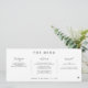 These unique horizontal wedding menus feature a modern handwriting script in a simple black and white design. Personalised with the couple's names and wedding date, they add a stylish and contemporary touch to your reception, combining elegance with a personalised flair for your special day.