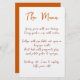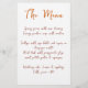 This casual and modern wedding menu with a font that mimics handwriting is perfect for a summer wedding, fall wedding, casual wedding or any other celebration where you would like to use custom menu cards. This menu template features a burnt orange background on the back of the card- all colours of this wedding menu card can be customised in the design tool! There you can also change the placement of the text.