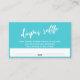 Modern Handwriting Turquoise Diaper Raffle Ticket Enclosure Card