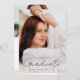 Announce your graduate's achievements and future plans with this stylish, modern photo graduation announcement. The front of the announcement displays the graduate's full-bleed vertical photo. "Graduate" is displayed in a trendy, handwritten black script. Personalise the announcement with the graduation year, graduate's name, and school name. The announcement reverses to display an additional photo with your custom text shown below in black lettering. This 2 photo graduation announcement is perfect for high school or college graduations.