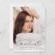 Announce your graduate's milestone in style with our personalised photo graduation party invitation! The front showcases a vertical photo of the graduate, adorned with "Graduate" in a chic handwritten black script overlay. Customise the front of the invite with your graduate's name, graduation year, and school name for a personal touch. Flip to the back to reveal another senior photo and all the party details below. Perfect for high school or college celebrations, this invitation sets the tone for a memorable event. Create lasting memories and invite your loved ones to join in the festivities with our photo graduation party invitation!