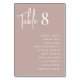 Simple and chic table number cards in Rose Taupe and white make an elegant statement at your wedding or event. Design features "table [number]" in handwritten script lettering, with individual guest names below in timeless serif typography. Design repeats on both sides.