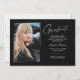 Double sided, two photo modern and elegant graduation announcement cards, featuring design elements of modern text with a unique handwritten style ink script in white for darker background colour choices. The graduate's photos on the front & back of the card are accented with a delicate & minimalist gradient boarder. The front of the card offers personalised text spaces for information about your graduation. Black & White or easily customise the background to match your school's primary colour or any colour of your choice. Perfect for the high school, college and university grad student.