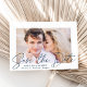 Announce your wedding date in style with our trendy modern photo save the date cards. The design displays your engagement photo with "Save the Date" in a navy handwritten script overlay. Personalise the front of the save the date photo card by adding your names, wedding date, and wedding location. The simple save the date photo card reverses to a navy and white dotted geometric pattern.