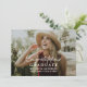 This modern, elegant graduation announcement card is a radiant template designed to celebrate the bright future of your graduate. This announcement captures the graduate's joy and anticipation for the journey ahead as they prepare for the next exciting stage of their lives. On the front, a photograph of the graduate with the text, "Congratulations Graduate," the graduate's name, school name, and class year in a combination of elegant handwritten script and modern serif fonts, allow for a personal touch that speaks directly to this milestone. Flip to the back of the announcement, and the narrative deepens. Here, you find a second photograph complemented by a heartfelt announcement with the details of the graduation and future plans set against a classic black background, giving the card a touch of sophistication and making the white text pop with clarity. This card isn't just a notice of graduation—it's a keepsake, a reminder of the moment when the graduate stood on the threshold of their future.
