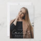 Announce your graduate's achievements and future plans with this stylish, modern photo graduation announcement. The front of the announcement displays the graduate's full-bleed vertical photo. "Graduate" is displayed in a trendy, handwritten white script. Personalise the announcement with the graduation year, graduate's name, and school name. The announcement reverses to display an additional photo with your custom text shown below in black lettering. This 2 photo graduation announcement is perfect for high school or college graduations.